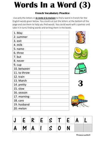 Words In A Word 3 French Vocabulary Practice Teaching Resources